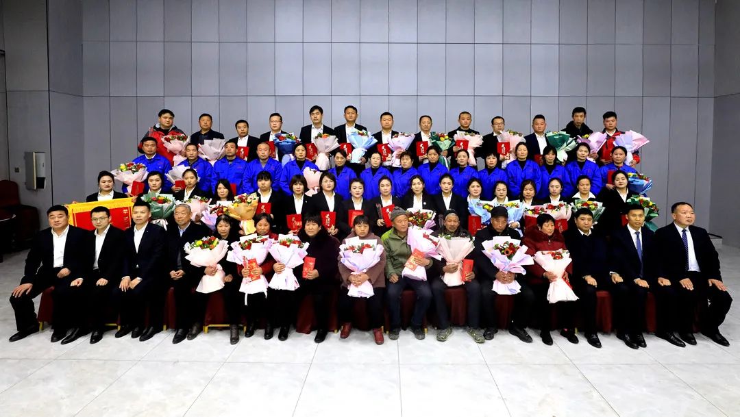 年會結(jié)束后,公司領(lǐng)導(dǎo)與特邀員工家屬、受表彰的先進(jìn)個(gè)人和集體合影留念