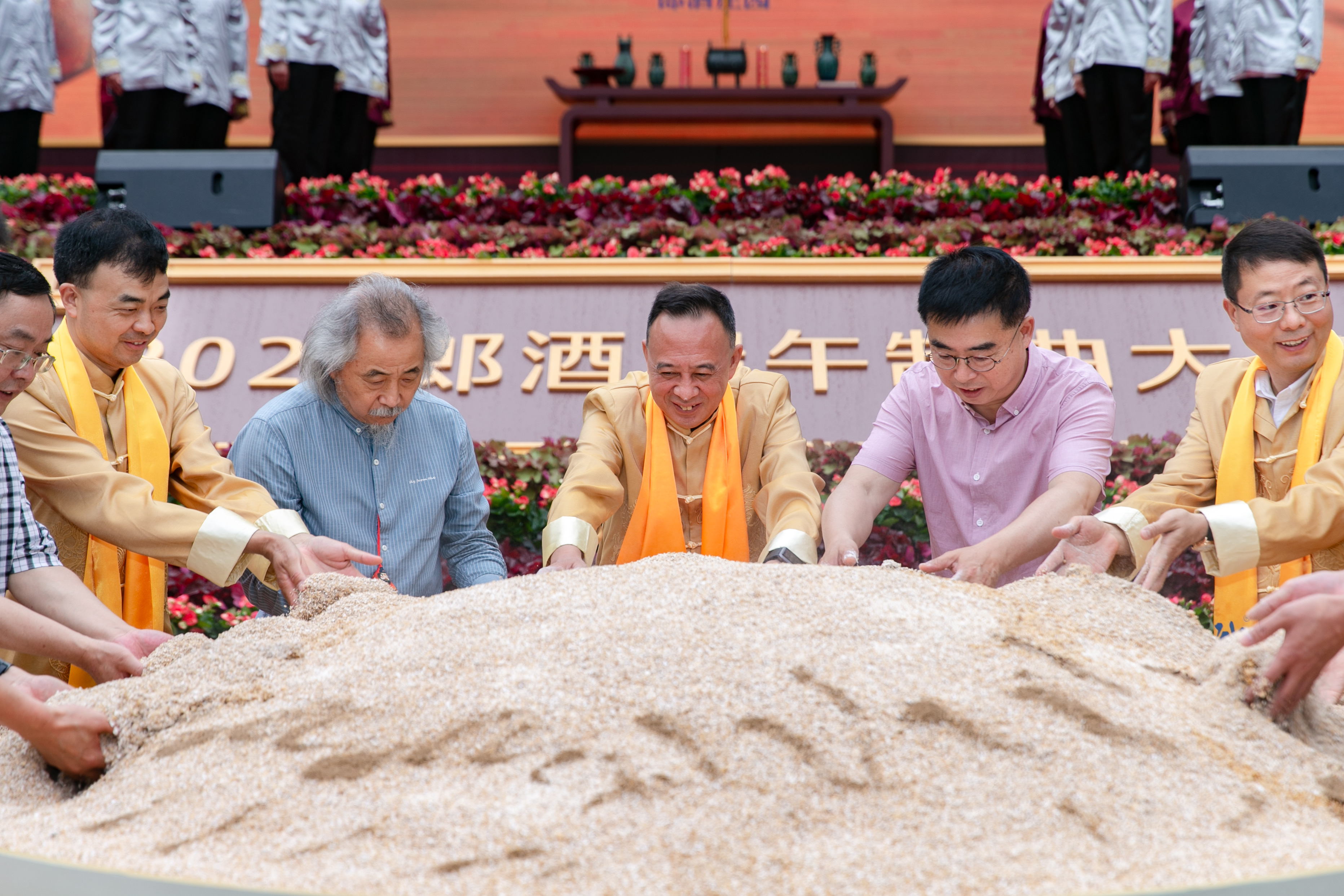 郎酒集團董事長汪俊林與各界嘉賓共同拌曲,開啟2022端午制曲大典