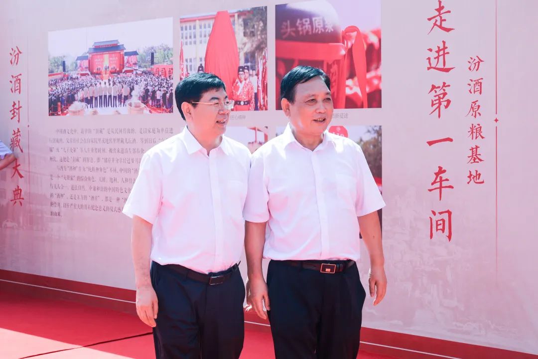 儀式結束后,袁清茂、李秋喜等領導嘉賓共同參觀了汾酒老作坊和汾酒文化廣場“2022企業文化月”展覽。