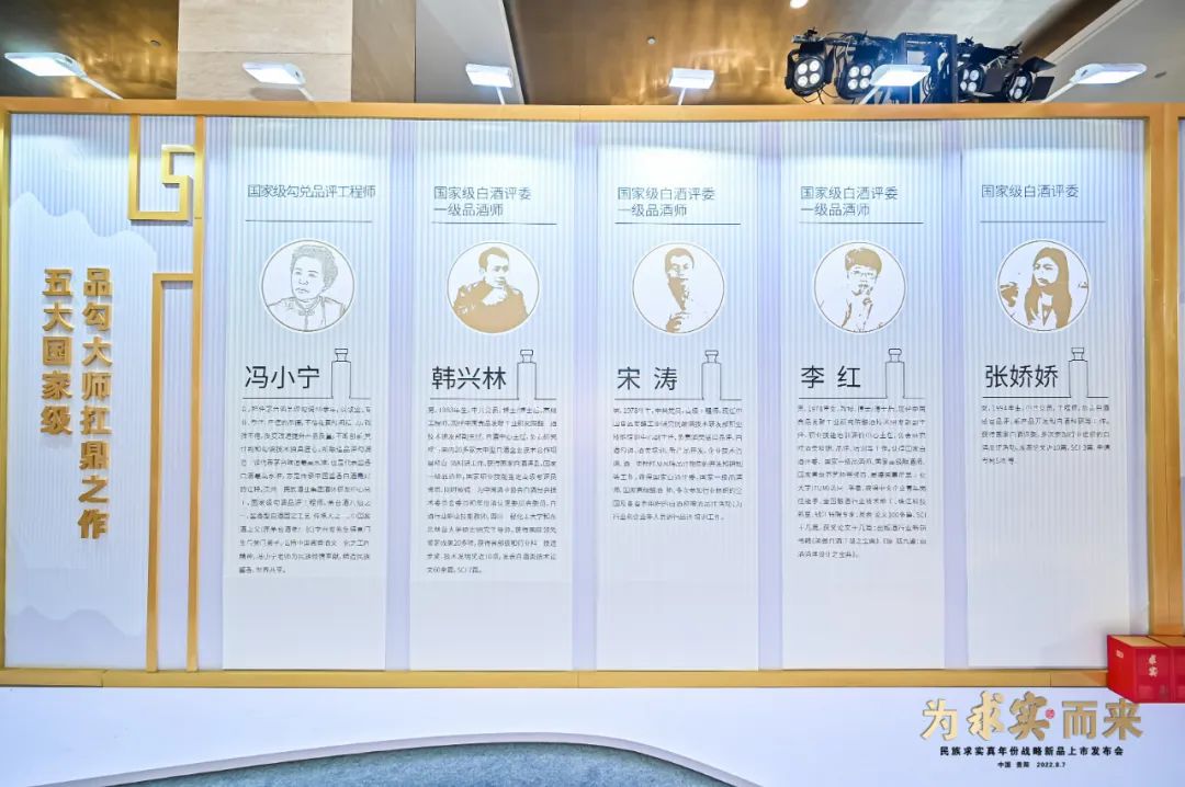 發布會進入尾聲,五位國評調酒師登臺亮相,國家級品酒大師馮小寧老師于會上道:“我們這代釀酒人,在釀造車間到與實驗室之間奔波了幾十年,堅持古法茅香,堅持匠心不移,這是我的求實。求實·大曲醬香真年份酒是我與臺上幾位大師共同勾調,期間我們嘗試了數百種勾調方式,最后才得出這一款酒體風格醇厚鮮明,品質上乘的求實醬酒。我非常看好求實·大曲醬香真年份酒在市場上的前景,也期待求實品牌落地后前路熠熠生輝。”