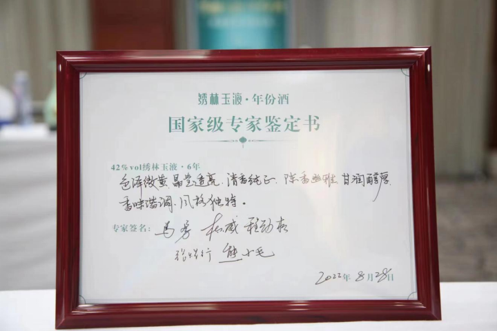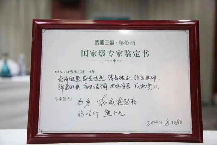 當(dāng)日新上市的三款繡林玉液·年份酒接受了中國食品工業(yè)協(xié)會副會長兼秘書長馬勇,中國酒業(yè)協(xié)會副秘書長、原汾酒集團總工程師杜小威,國家食品質(zhì)量監(jiān)督檢測中心副主任、教授級高級工程師程勁松,中國釀酒大師、河北衡水老白干酒業(yè)副董事長張煜行,中國釀酒大師、白云邊酒業(yè)總顧問熊小毛等國家級權(quán)威白酒專家的大考,勁牌有限公司總裁王楠波、勁牌有限公司副總裁陳國華、勁牌有限公司健康白酒技術(shù)部部長童國強、繡林玉液酒業(yè)總經(jīng)理賀漢兵、繡林玉液酒業(yè)技術(shù)總監(jiān)魏凡龍參加繡林玉液年份酒品質(zhì)鑒定會。