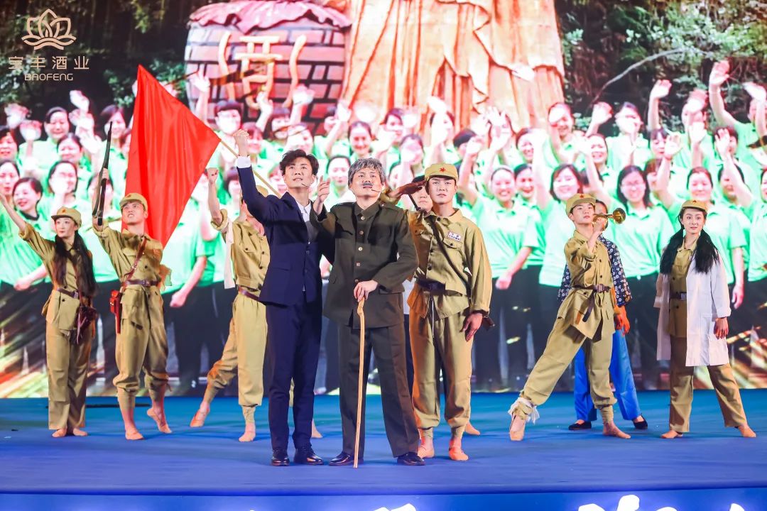 清香美酒,浸潤著傳承的力量,也閃耀著紅色的榮光。一曲紅色贊歌與精心定制的寶豐酒紅色文化情景劇,將寶豐酒業與新中國共奮進的時光中,使命感與信念感的堅守、傳承演繹地淋漓盡致。伴隨著領導們的祝酒詞,在場賓主共同舉杯清香,敬華夏傳承,敬盛世中國。