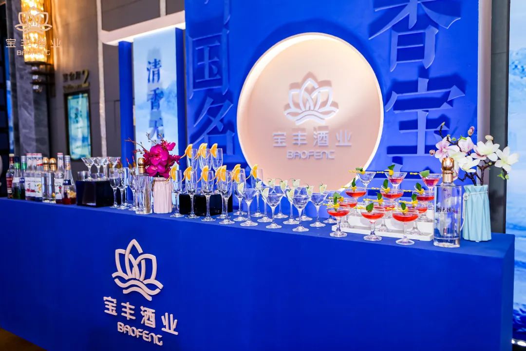 宴會廳內,璀璨奪目的燈光與古色古香的藍色交相輝映,盡顯名酒風范。絢麗繽紛的花式雞尾酒,精心布置的杯盞,以及婉轉悠揚的古箏音樂,無不展示出清香名酒的優雅魅力。