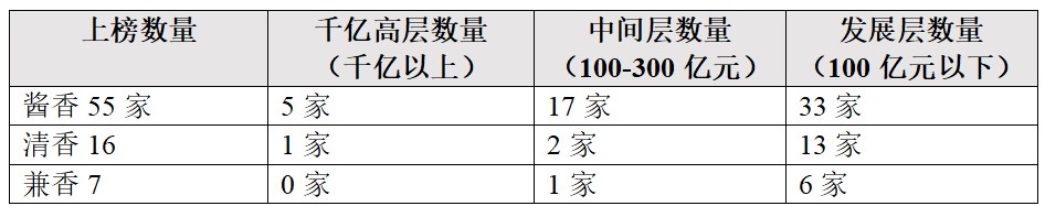 而醬酒根據(jù)品牌價(jià)值的多少,也可以分為千億的高層(茅臺(tái)、習(xí)酒、郎酒、國臺(tái)、金沙),100到300億的中間層,以及100億以下的發(fā)展層。