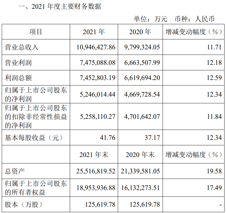 有投資機(jī)構(gòu)根據(jù)盈利預(yù)測(cè)與估值測(cè)算,預(yù)計(jì)貴州茅臺(tái)2022年歸母凈利潤(rùn)同比增速為19.8%。