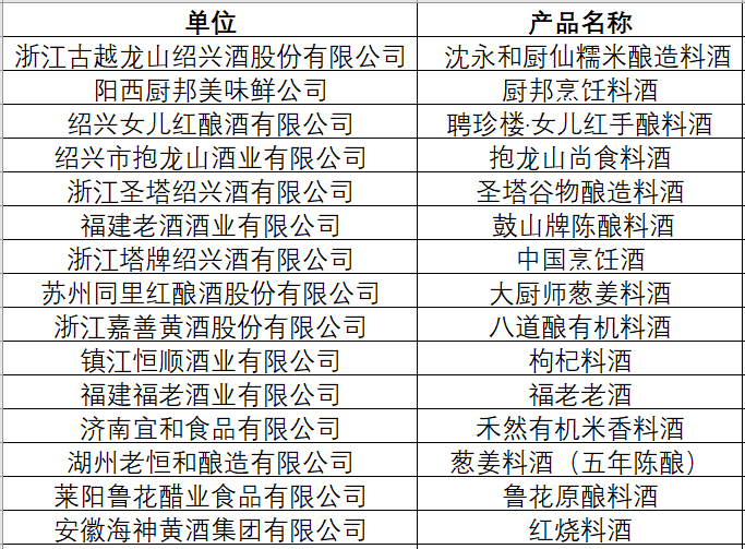 第三屆釀造料酒金獎產(chǎn)品