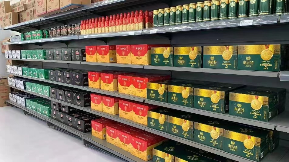 在北京冬奧會主媒體中心綜合商店,青島啤酒冬奧冰雪罐、鴻運(yùn)當(dāng)頭、奧古特、全麥白啤、黑啤等5款產(chǎn)品亮相,占據(jù)了店內(nèi)的一整面貨柜,工作人員表示,不少國際友人會選擇青島啤酒作為賽間休息或慶功用酒。這其中,青啤冬奧冰雪罐將冬奧會15個官方競技項目巧妙融于罐身,令人過目難忘;瓶身以喜慶的中國紅為主,傳統(tǒng)中國結(jié)圖案圍繞“福”字的設(shè)計,讓鴻運(yùn)當(dāng)頭這款充滿“中國味”元素的產(chǎn)品最為受寵;包裝自帶冠軍氣質(zhì),在世界啤酒錦標(biāo)賽奪金的奧古特,以金牌品質(zhì)成為冬奧會上的“搶手貨”;作為顏值和口感與眾不同的兩款啤酒,全麥白啤的精致包裝讓眾多國際友人愛不釋手,黑啤則以其獨特的口感吸引著不少人頻頻選購、幾乎人手一罐。