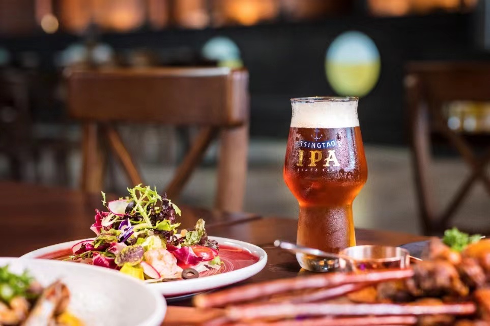 此外,青啤對品質的追求還體現在酒杯里、擺盤里、刀叉里、配菜里……為了釋放啤酒最佳口感,青啤采用專酒專杯,專屬啤酒杯讓不同精釀的色澤、香氣、味道、口感達到最佳狀態。而根據每一款精釀啤酒的口味特點,精準搭配不同口味的文化融合菜,例如美式IPA,因其本身苦味且回水果甘,搭配咸、辣口味的菜品(肉類、海鮮和披薩)最適宜;以苦味為主的比利時雙料,搭配甜、鮮為主的餐品(扒腸、甜點)最適宜。
