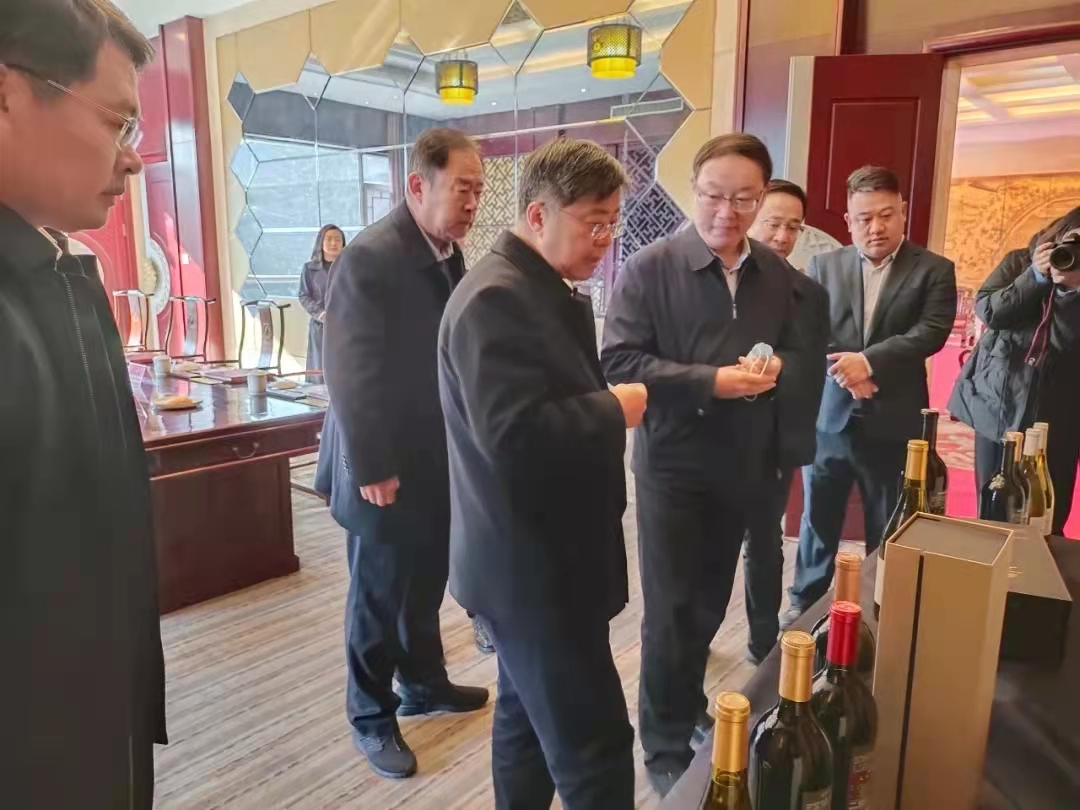適逢元旦佳節,煙臺市蓬萊區區委書記林鈺濤,蓬萊區委常委、區政府副區長田文良,蓬萊區區委秘書長王杰,登州街道黨工委書記劉軍凱等領導一行蒞臨中國盛唐?國賓酒莊,視察指導工作,并在酒莊召開了座談會。金宇集團董事長兼國賓酒莊董事長劉長庭、金宇集團總經理劉建成、中國盛唐?國賓酒莊總經理杜宜龍陪同視察并座談。