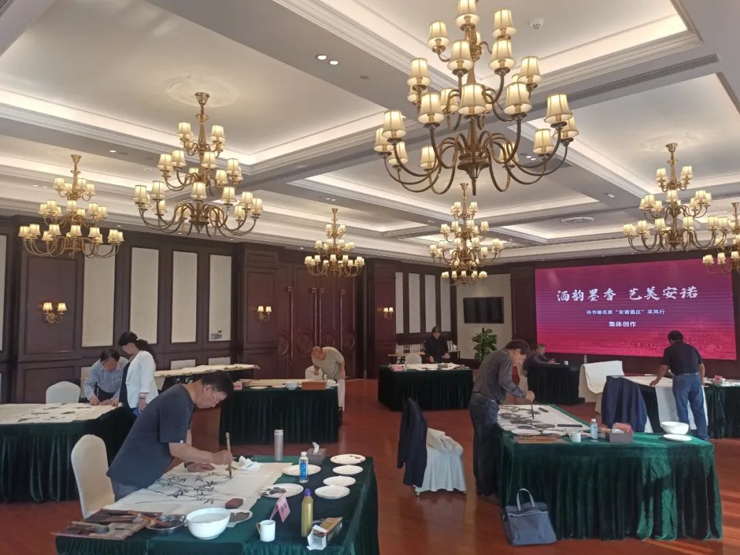 在作品創作現場上,詩書畫名家們用飽滿的熱情,吟詩作畫、揮毫疾書,一首首高雅的詩詞,一幅幅精美的書畫,令在場觀摩者贊賞不已。大寫意、工筆畫風采各異,精彩絕倫;真草隸篆行五體書法,奔放毫端。大家潛心創作出詩詞、書法、繪畫(國畫、山水畫、水墨畫)作品,為酒莊潤色添彩,譜寫美好詩篇,描繪壯麗畫卷。