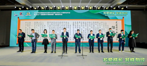 在發布會活動現場,中國酒業協會酒與社會責任促進工作委員會輪值理事單位代表宣讀了“關愛成長、非成勿飲”倡議書,向全行業發起倡議并鄭重承諾:關愛未成年人成長,強化“非成勿飲”主體責任,堅決不向未成年人售酒。