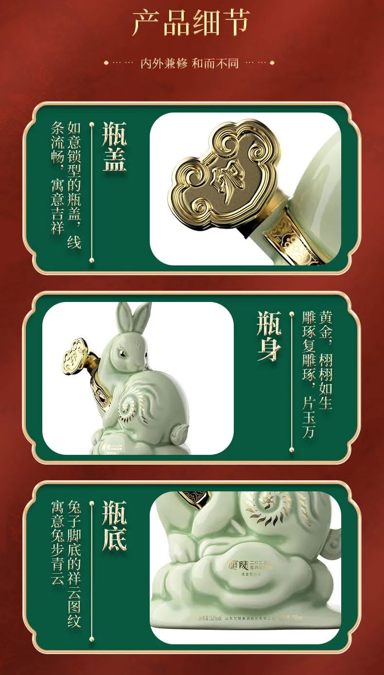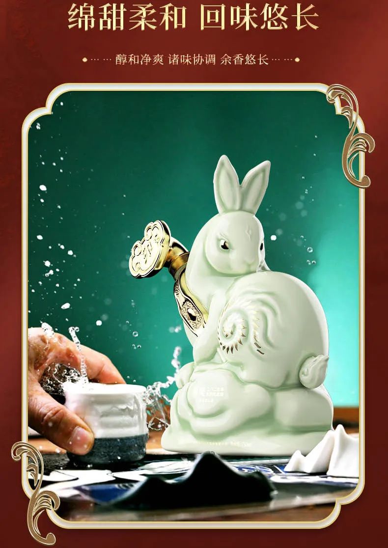 2023年癸卯兔年即將來臨,蘭陵美酒再出佳作,特別推出集生肖文化和白酒文化,兼具東方美學與收藏價值的蘭陵美酒兔年生肖酒--玉兔呈祥。