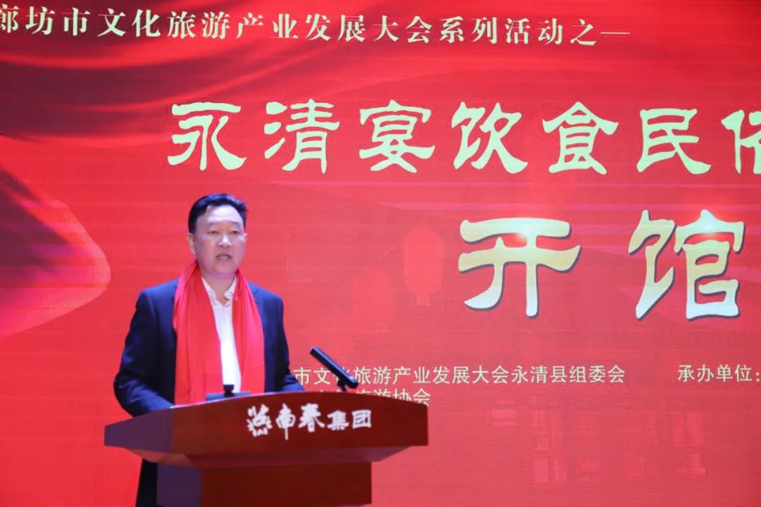 王勇在致辭中表示,永清宴飲食民俗文化博物館是在永清縣委、縣政府、縣文廣旅局、青春農(nóng)旅集團(tuán)的大力指導(dǎo)幫助下,規(guī)劃打造的極具地方特色的美食文化基地,旨在弘揚(yáng)和推介永清地方特色文化,引領(lǐng)家鄉(xiāng)文化餐飲產(chǎn)業(yè)健康發(fā)展。