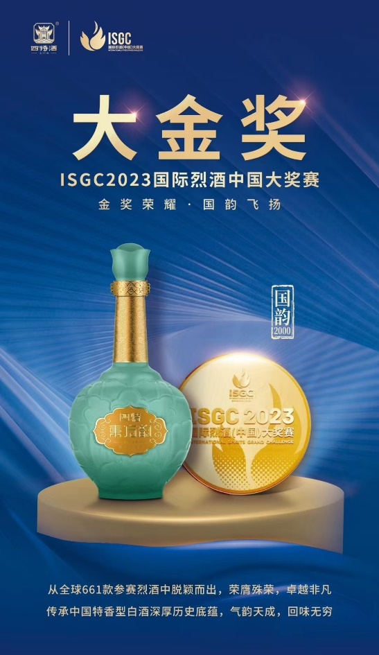 日前,在湖南省常德市舉辦的ISGC2023國際烈酒(中國)大獎賽上,四特東方韻·國韻2000 52%vol榮膺“ISGC2023國際烈酒(中國)大金獎”獎項,與此同時,四特東方韻·國韻2000還獲得ISGC2023國際烈酒(中國)包裝設計大賽金獎。
