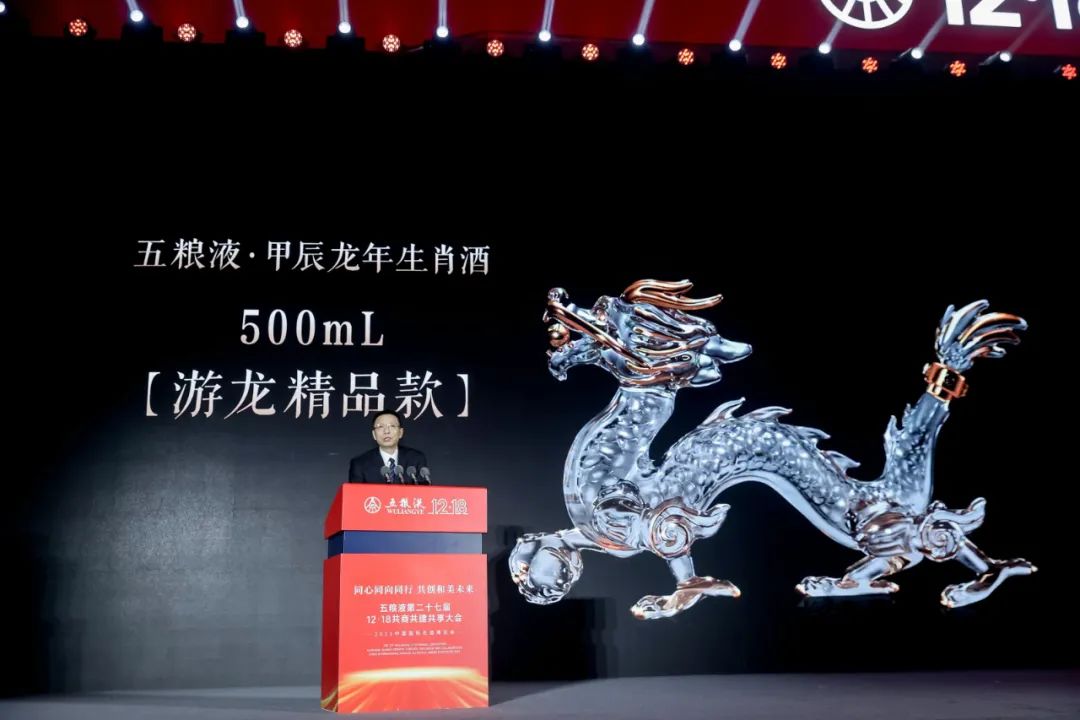活動(dòng)現(xiàn)場(chǎng),五糧液還隆重舉行了“五糧液·甲辰龍年生肖酒”發(fā)布盛典。以生肖文化為靈感設(shè)計(jì)的限量版佳釀——五糧液·甲辰龍年生肖酒隆重亮相。中國(guó)白酒大師、五糧液股份公司技術(shù)總顧問(wèn)趙東在現(xiàn)場(chǎng)從賞龍之韻、品龍之醇、鑄龍之魂、藏龍之曜四個(gè)篇章,對(duì)產(chǎn)品深厚的文化內(nèi)涵、極致工藝、匠心品質(zhì),尊享價(jià)值進(jìn)行了深度介紹。