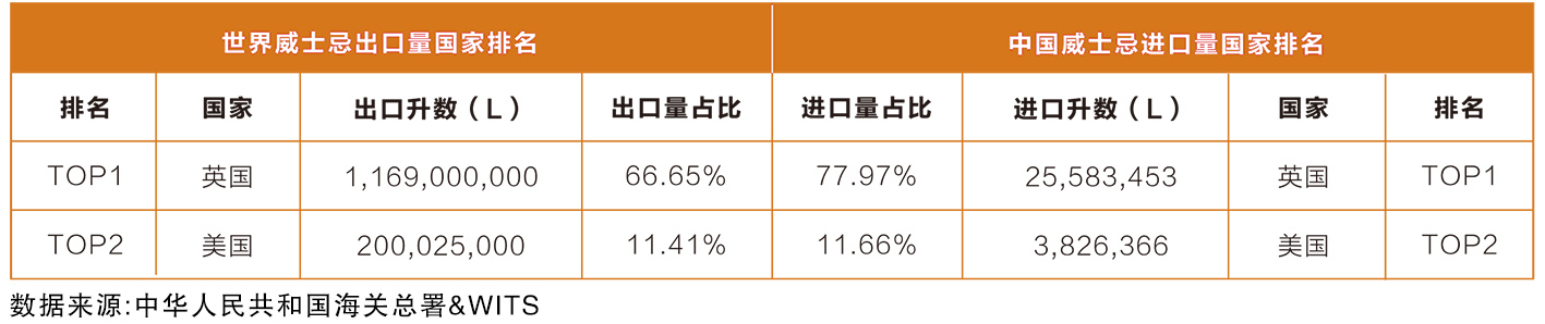 再看中國進口威士忌的情況,2022年,中國海關進口數據顯示,英國(77.97%)、美國(11.67%)、日本(6.21%)、愛爾蘭(1.00%)四個國家占據了中國威士忌進口量的96.84%。對比中國威士忌進口占比及世界威士忌出口占比,可以明顯看出,中國從英國進口了更多的威士忌,而美國則基本與其出口水平持平。