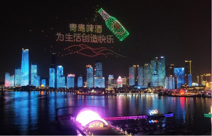 “相約時(shí)尚青島”,必是離不開溫潤的海風(fēng)和沁人的啤酒香。夜幕降臨,青島浮山灣畔游人如織。在天與海之間,上千架無人機(jī)組成的巨幕青島啤酒光影升騰而起,與城市樓宇燈光秀交映配合,金色酒液緩緩傾注,在天與海之間演繹出“青島啤酒,為生活創(chuàng)造快樂!青島與世界干杯!”千機(jī)競飛,光影交錯(cuò),為市民、游客呈現(xiàn)出夜空下璀璨的城市光影大秀。“真的是流連忘返,太美了!”欣賞著千機(jī)秀和燈光秀,來青島旅游的李先生連聲贊嘆。