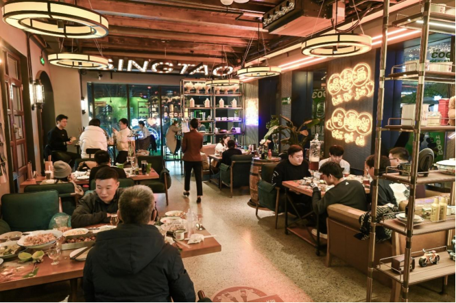 “行于里,居于院。里院承載著青島人生活的時(shí)光印記,也是如今年輕人的潮流聚集地。”青島本地的年輕人小王正在與朋友在1903青島酒館MIX舉杯暢飲,滔滔不絕介紹起這里的歷史,“這里是始建于1903年的玉春酒樓舊址,與青島啤酒同齡,距今已有120年歷史了”,如今這里已然被打造為青島啤酒1903酒吧眾多特色品牌之一,MIX之意是以青島啤酒特色文化為載體,將啤酒餐飲、文化茶飲、啤酒酵母烘焙、啤酒主題民宿、微醺酒吧、閱讀空間諸多元素融合在一起,滿足消費(fèi)者個(gè)性化、多元化的消費(fèi)需求。