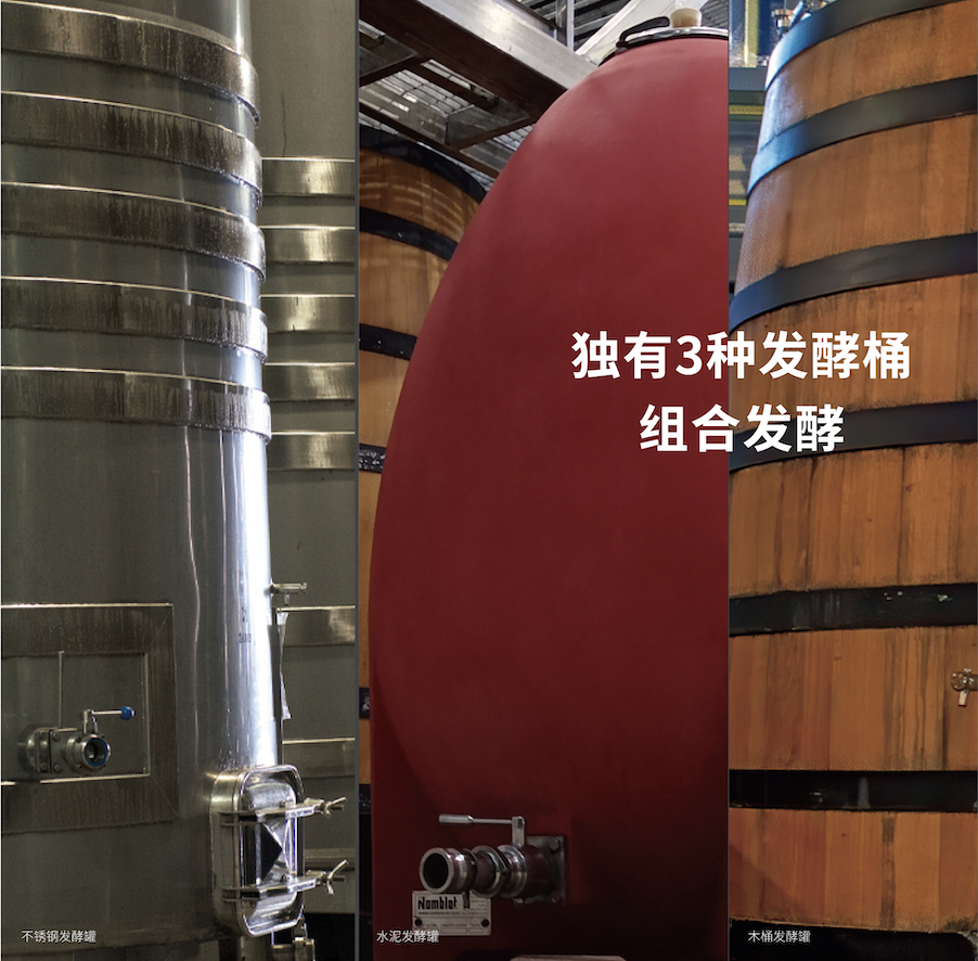 發酵時,丁洛特酒莊選用橡木桶、不銹鋼罐和蛋形水泥罐三種發酵罐,各取所長,把葡萄的潛力充分發揮出來。