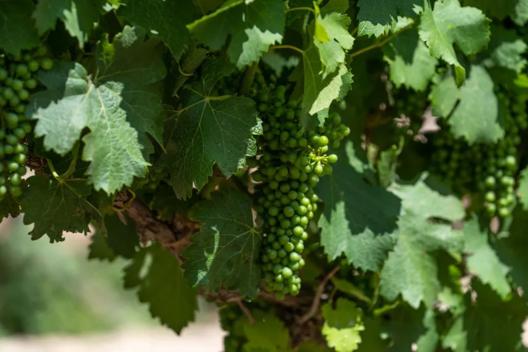 葡萄園里呈現四季之景,時而幽曠,時而豐盈。在看到維歐尼時,趙鳳儀忍不住分享道:“我很愛維歐尼這個白葡萄品種,我在讀書時的英文名就是Viognier,在寧夏賀蘭山東麓沒有多少酒莊種植這個可愛的品種,它是一個很不容易栽培的品種,看到有很多葡萄串,可見坐果率不錯,我很期待這款干白葡萄酒。”