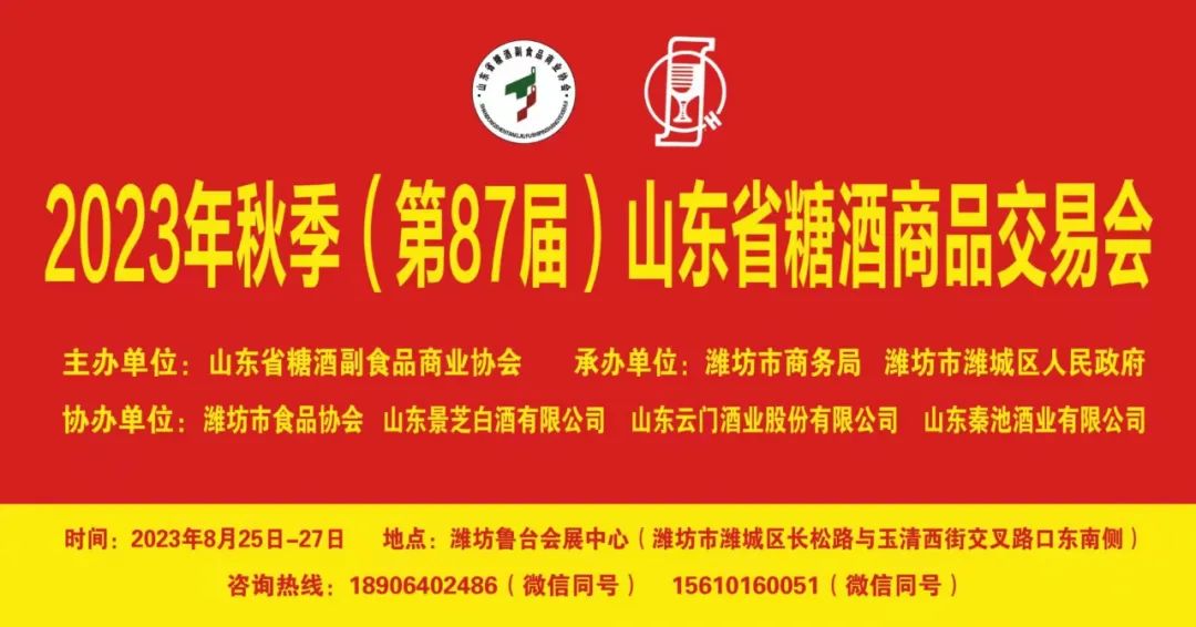 2023年秋季(第87屆)山東省糖酒商品交易會將于8月26日在濰坊魯臺會展中心舉辦,作為魯酒廣大企業對外展示形象和實力的重要舞臺和窗口,歷來深受魯酒企業重視和支持。