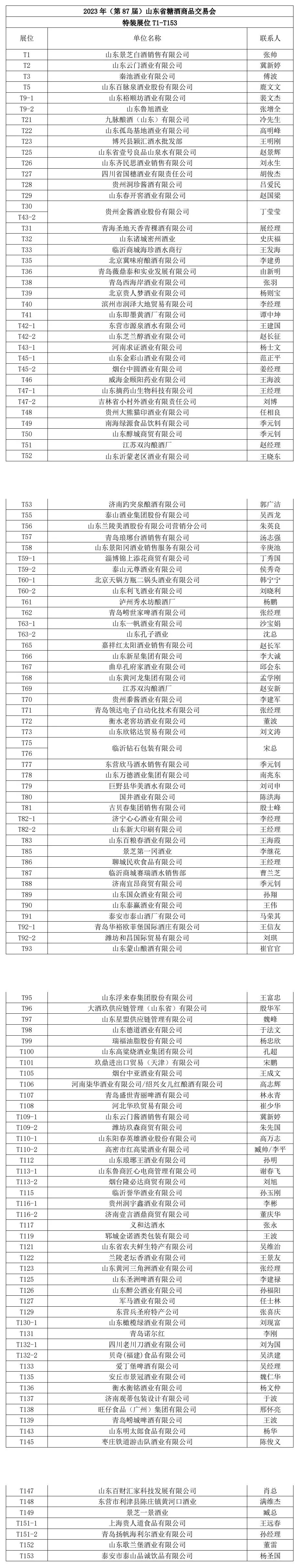 截至目前,蘭陵、景芝、孔府家、泰山、國井、古貝春、青島瑯琊臺、濟南趵突泉、花冠、青州云門、秦池、紅太陽、景陽岡、百脈泉、沂蒙老區、威海頤陽、金彩山、黃河龍、百糧春、浮來春、心酒、蒙山釀酒、萬德、欣馬、孔子酒業等近30家魯酒骨干白酒企業已紛紛預定展位,將集中亮相2023年秋季(第87屆)山東省糖酒商品交易會。