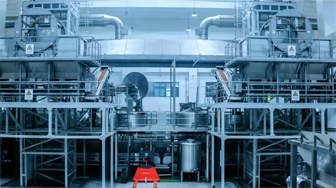 走進紅星二鍋頭釀造基地,你會被其宏偉規模所震撼。在這里,傳統釀造和智能制造有機結合,為我們呈現出集智能化、生態化于一體的“綠色智慧工廠”。智能化的車間內,自動化原料輸送系統、圓盤制曲系統、中控系統等系統,裝甑機器人、AGV(無人物料轉運車)、自動量質摘酒系統等設備有序運轉,傳統二鍋頭釀造工藝通過智能化手段得以完整實現。