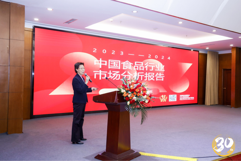 中國副食流通協會會長何繼紅作出《2022-2023中國食品行業市場分析》報告。報告從2023年中國食品行業市場基本現狀、2023中國食品行業主要品類細分市場情況、2023年中國食品行業熱點專題、2024年中國食品流通產業發展趨勢等四個部分分析了市場,研究了趨勢、提出了方向。