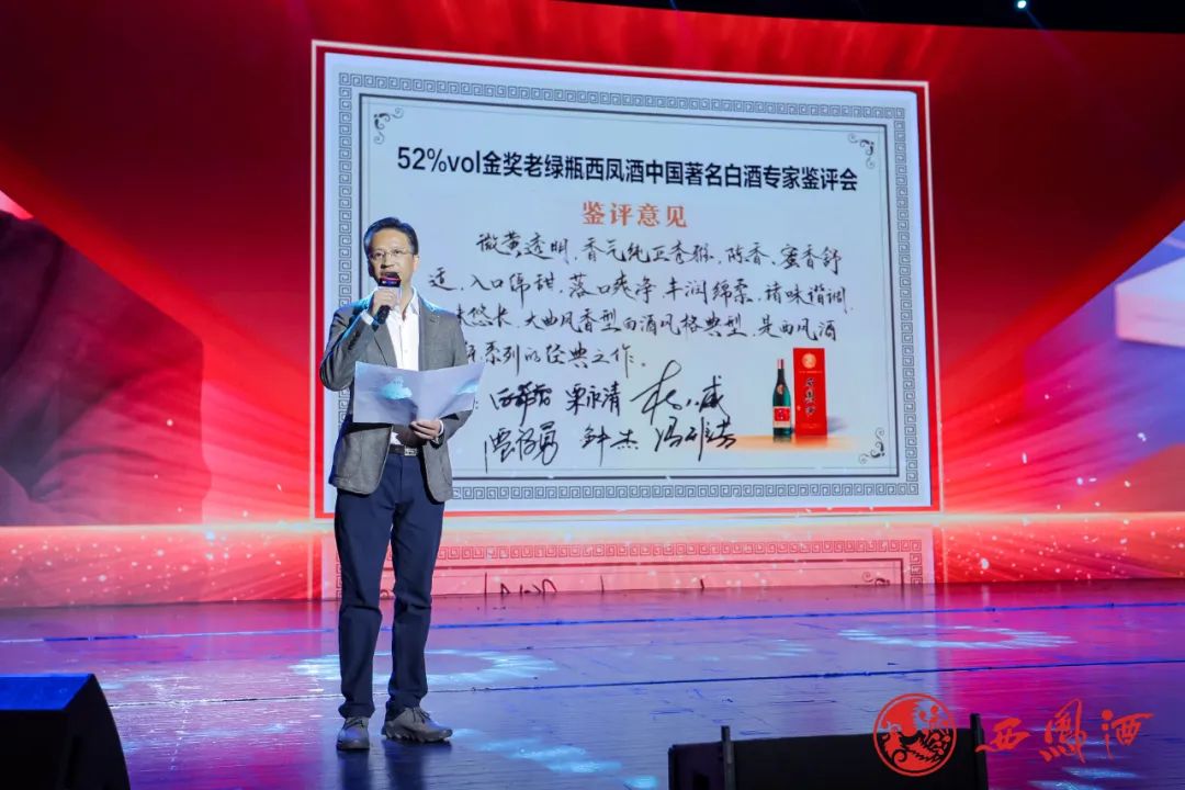 當(dāng)天的大會上,西鳳酒推出面向300元價(jià)格段的新品“金獎老綠瓶西鳳酒”。著名白酒專家、四川源坤教育科技創(chuàng)始人、國家市場監(jiān)管重點(diǎn)實(shí)驗(yàn)室學(xué)術(shù)委員鐘杰宣讀了專家團(tuán)鑒評結(jié)果——“該產(chǎn)品香氣純正秀雅,陳香、蜜香舒適,入口綿甜,落口爽凈,豐潤綿柔,回味悠長”。