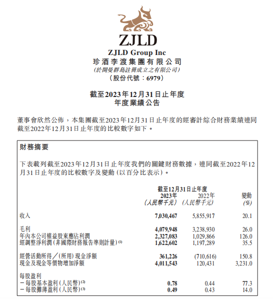 2023年4月,珍酒李渡(6979.HK)成功登陸港交所,成為“港股白酒第一股”,引發(fā)廣泛的行業(yè)關注。近日,珍酒李渡發(fā)布了上市以來的首份年報,再次引發(fā)熱議。