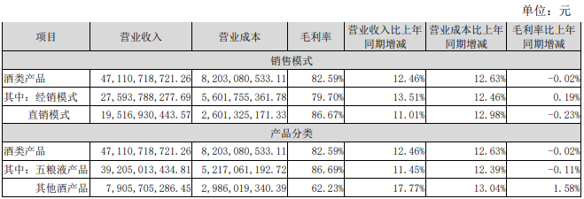 分產(chǎn)品看,五糧液產(chǎn)品上半年實現(xiàn)營收392.05億元,同比增長11.45%;其他酒產(chǎn)品實現(xiàn)營收79.06億元,同比增長17.77%。