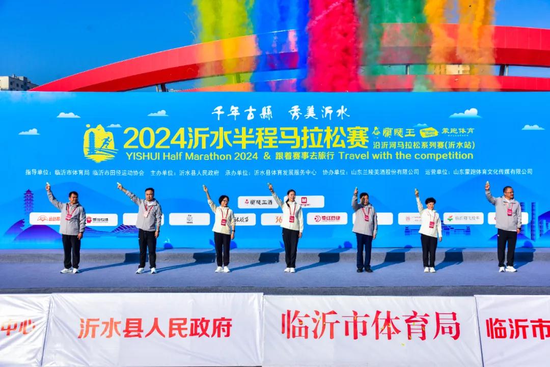 起跑儀式,由臨沂市體育總會常務副會長唐艷芳,沂水縣政協黨組書記、主席郭忠友、沂水縣委常委、副縣長王海娟、沂水縣人大常委副主任龐秀英,蘭陵美酒副總經理賈爽等領導嘉賓出席開幕式,并為比賽鳴槍發令。