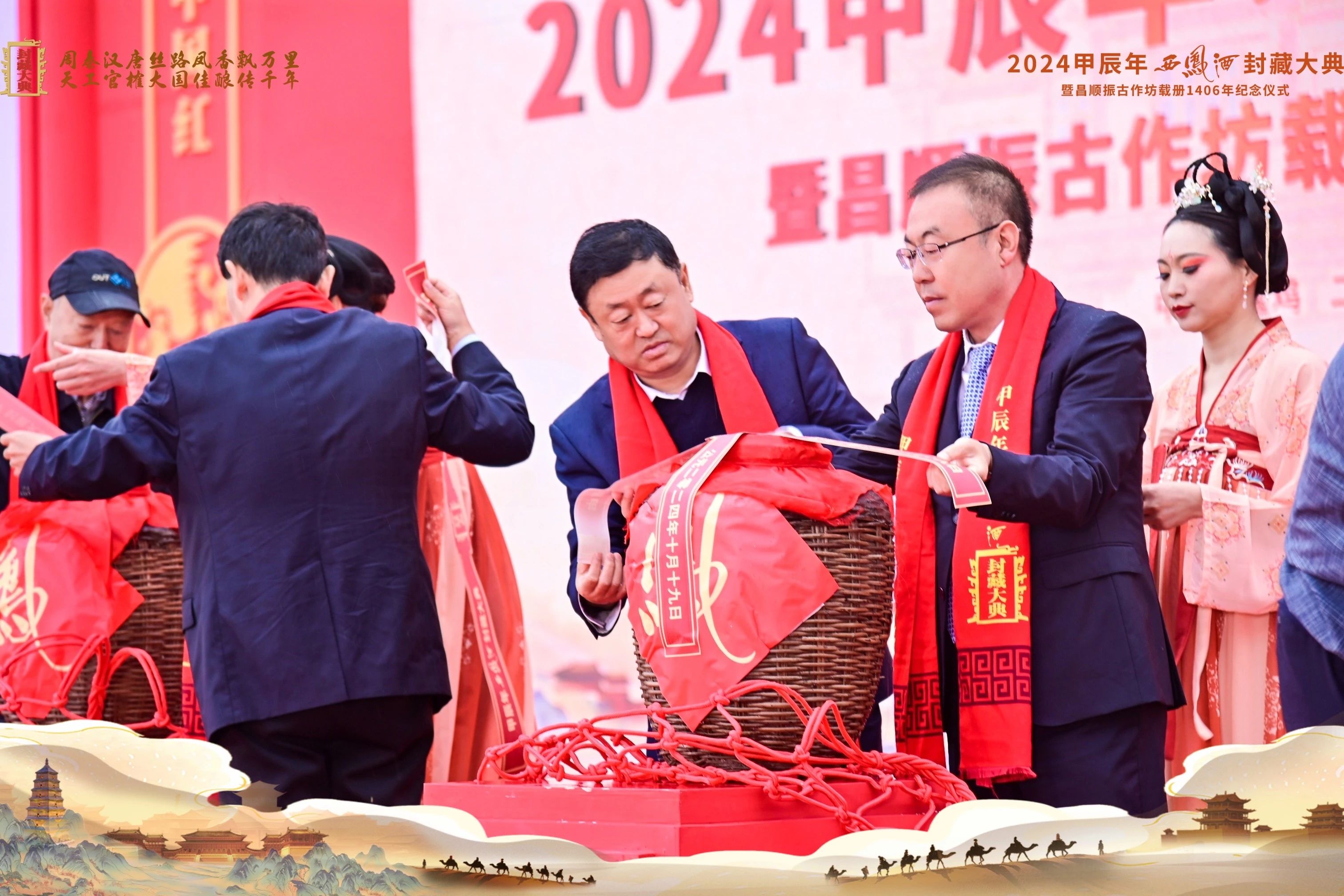 封藏歲月釀輝煌,今昔盛世昌順振。為了傳承千年非遺釀造技藝,堅守匠心、封藏美好、感恩先賢、弘揚酒文化,慶祝西鳳酒的傳承和豐收,奏響祖國75周年華誕頌歌,推動白酒產業高質量發展。10月19日,2024甲辰年西鳳酒封藏大典暨昌順振古作坊載冊1406年紀念儀式在西鳳集團隆重舉行。
