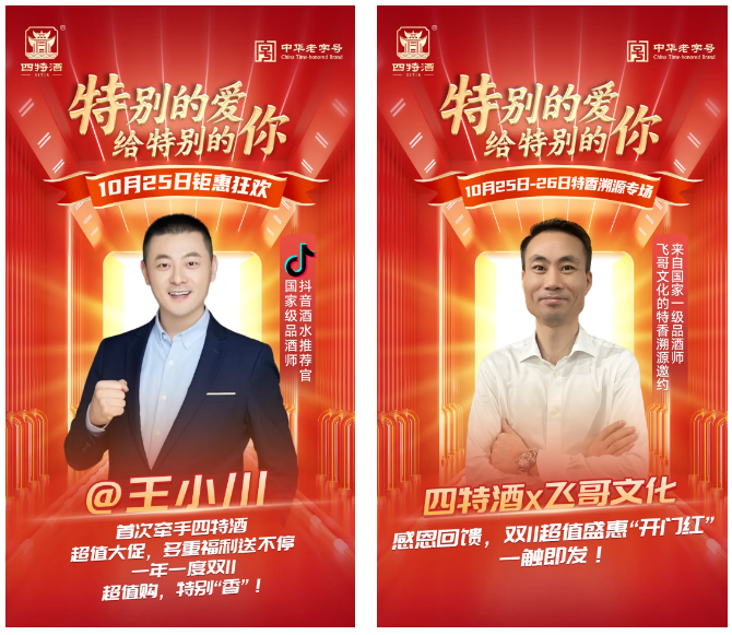 作為中國特香型白酒開創者和中華老字號,此次“雙十一”,四特酒攜旗下各系列精品開設專場溯源直播,與抖音酒水推薦官、國家級品酒師王小川,以及江西酒水類知名博主、國家一級品酒師飛哥文化達成直播帶貨合作,這也是四特酒開啟的首次達人直播帶貨。