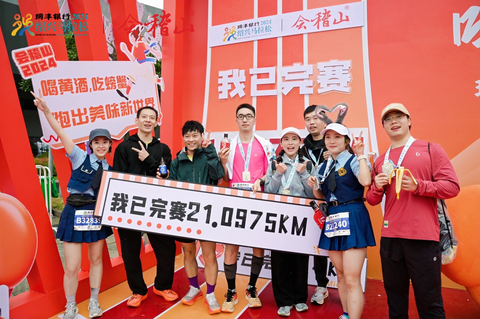 本屆馬拉松參賽規模為歷屆之最,不僅有來自中國、美國、日本、英國、澳大利亞、俄羅斯、加拿大等14個國家和地區的跑者,也有本屆馬拉松官方合作伙伴——會稽山聲勢浩大的企業方陣。方陣運動員們身披“蟹蟹會稽山 吃蟹不怕寒”橙色披風,齊喊口號為運動健兒加油助威,成為了現場一道與眾不同的風景線。
