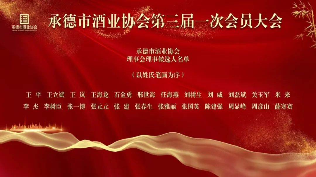 會上還宣讀了協會第三屆理事會成員選舉辦法和三屆理事會候選人名單,經過大會表決,劉磊斌連任第三屆理事會理事長,河北沙城老窖酒業(yè)有限公司董事長王海龍、河北北蘋酒業(yè)有限公司董事長劉樹生、承德銀豐商貿有限公司總經理劉威、承德金山嶺酒業(yè)有限公司總經理關玉軍、承德龍臺酒業(yè)有限公司董事長李杰、圍場泓輝雙合酒業(yè)有限公司董事長李樹臣、承德九龍醉酒業(yè)股份有限公司董事長張一博、承德山莊集團銷售有限公司總經理張健、河北板城酒業(yè)有限公司黨委書記、總經理張春生、河北琢酒集團董事長張雅麗張雅麗(按姓氏筆畫)擔任副理事長,陳建強連任秘書長。協會聘任初海云為總顧問;聘任仇承軒為文化委員會主任,傅新春為副主任;聘任板城酒業(yè)技術總監(jiān)王士敏為專業(yè)技術委員會主任,九龍醉健康白酒研究院院長張春、山莊集團白酒技術研究所副所長劉淑杰為副主任;聘任鮑守坤為公益委員會主任。選舉譚麗莉、李慶忠、王帥、張文然、李超、張繼東、李志剛、商博、焦麗娟、張曉雪、羅兵、劉偉、李俊聰、楊寶成為副秘書長。在一次次熱烈的掌聲中,所有表決內容均獲得通過。