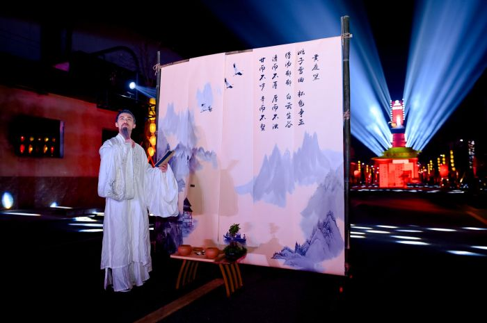 鳳舞云端,直上九霄。昆山玉碎鳳凰鳴,芙蓉泣露香蘭笑。第二篇章《禮》以古樂(lè)器、雄渾鼓聲、燈光展演為主,在莊重的氛圍中,將杜甫、蘇東坡、黃庭堅(jiān)、范成大、陸游等曾造訪過(guò)宜賓的古代名家以藝術(shù)筆觸進(jìn)行情景式融合展演,在一步一景中,將歷史重現(xiàn)于眼前,讓超越時(shí)代的風(fēng)華與匠心情懷,流淌出無(wú)盡的詩(shī)意。