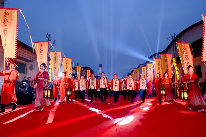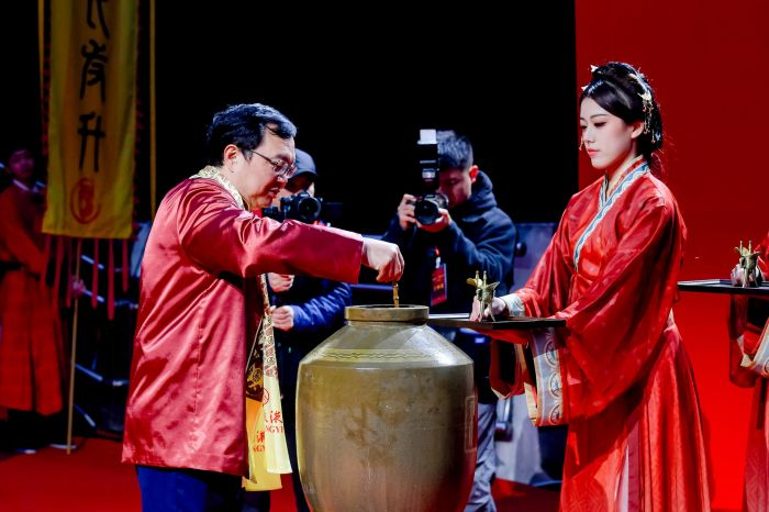 九州傳五糧,四海名揚(yáng),祈福禱安康,千載達(dá)萬(wàn)家,百世流芳,共迎新篇章。清晨,在渾厚有力的開(kāi)場(chǎng)詞中,祭祀大典正式開(kāi)始。整個(gè)大典分為《迎》《禮》《藝》《敬》《成》五個(gè)篇章,通過(guò)故事性、藝術(shù)性的敘事手法展現(xiàn)了中華優(yōu)秀傳統(tǒng)文化的獨(dú)特魅力與五糧液傳承逾千年的文脈底蘊(yùn)。