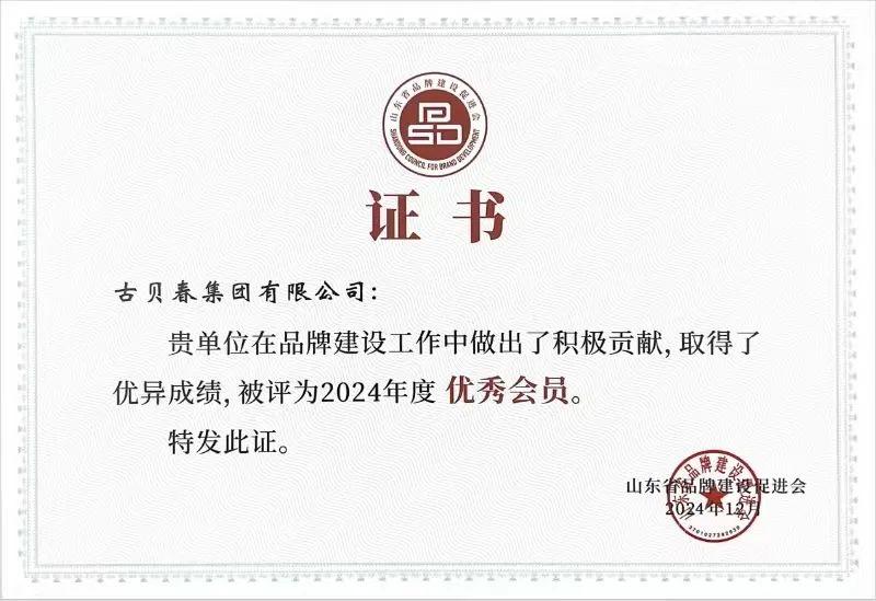 12月19日,“2024山東品牌年會暨ESG建設與品牌價值提升論壇”在濟南舉辦,古貝春集團被山東省品牌建設促進會授予“2024年度優秀會員”單位,精心策劃并實施的“以品質與誠信擦亮中華老字號金牌”案例成功入選“品牌建設優秀案例”。這彰顯了企業在品牌建設方面的卓越成就。