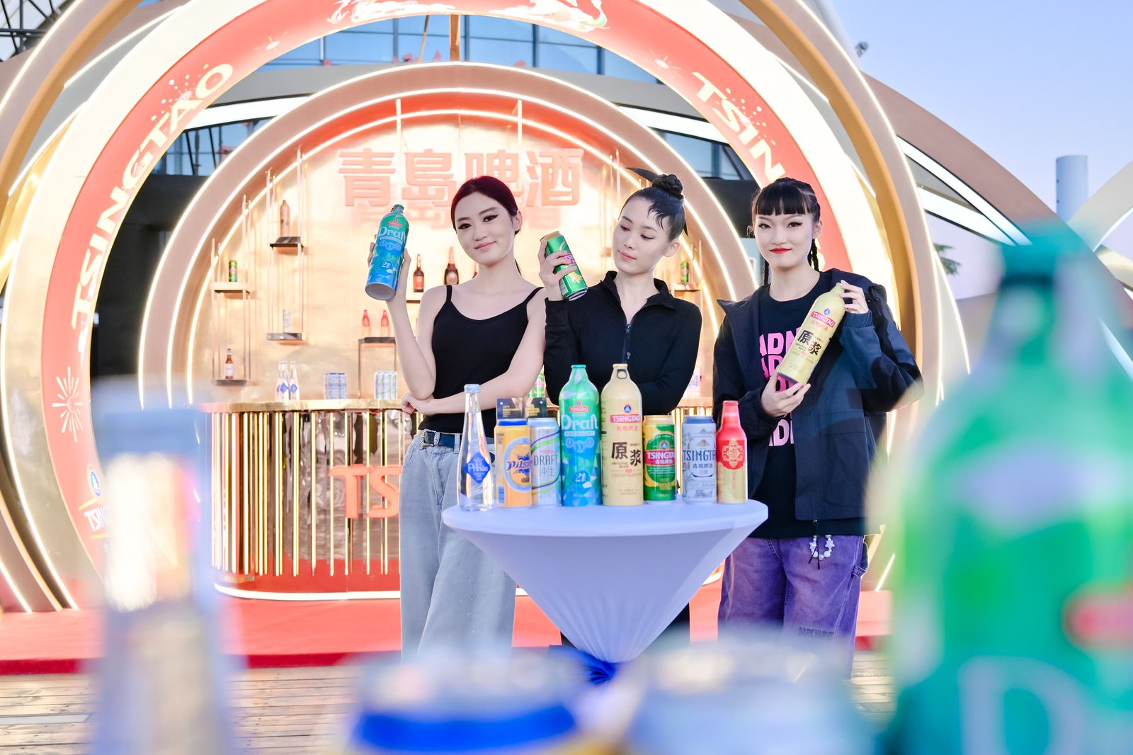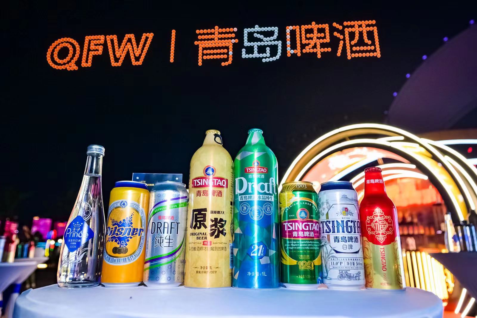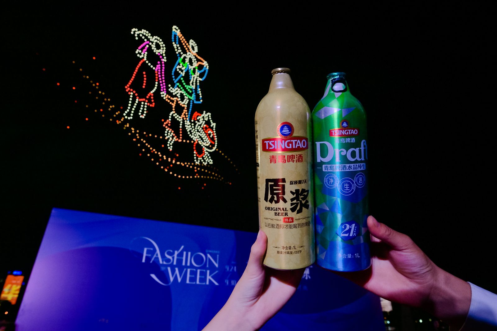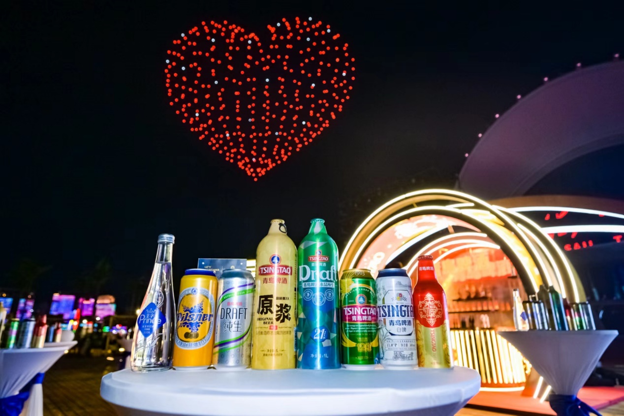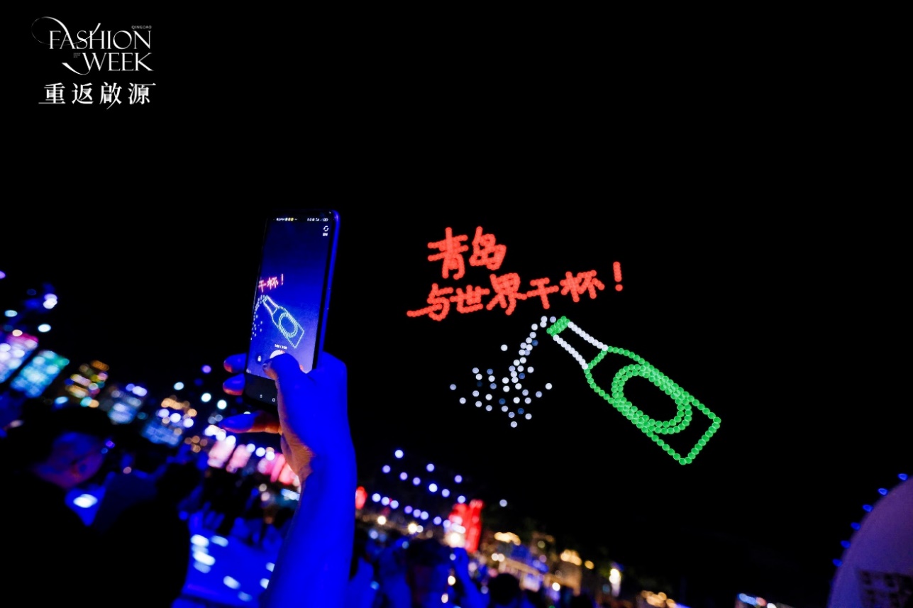 一直走在“舌尖時尚”前沿的青島啤酒,不僅是青島最具代表性、最具體驗感的時尚元素之一,也是這場大秀的時尚搭子:隨處可見的青啤綠清新可愛,LED屏幕上的青島啤酒時尚大氣,或地面發光或立體的青啤logo無處不在,更不用說吧桌上的青啤大家族,不同產品承載不同的時尚元素,好喝又好看!連夜空中的無人機都上演著“青島與世界干杯”的精彩。