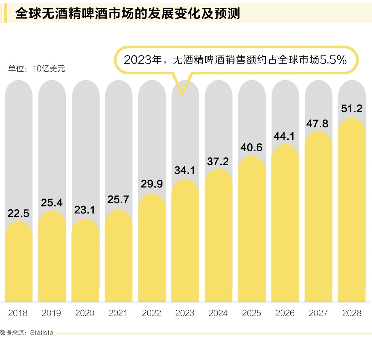 從數(shù)量來看,2024年非即飲渠道無酒精啤酒銷量預(yù)計將超過55億升,即飲渠道銷量將超過22億升,總銷量將達到78億升。預(yù)計到2025年,無酒精啤酒市場的銷量將增長2.2%。