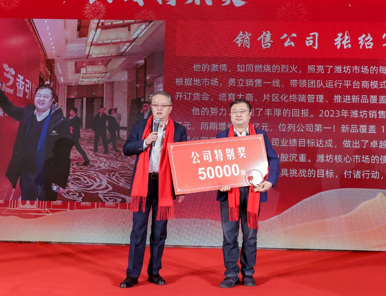 會上,景芝白酒副總經理焦文輝代表公司黨委宣讀《景芝白酒2023年優秀集體及優秀個人表彰決定》,對涌現出的優秀個人、優秀班組、優秀部門、專項獎、特別獎進行了表彰獎勵。