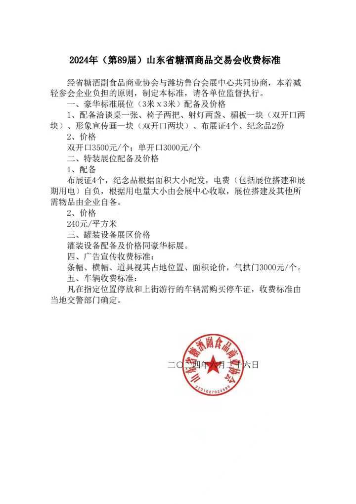 據悉,2024年(第89屆)山東省糖酒商品交易會定于8月16—18日在濰坊市魯臺會展中心舉辦。