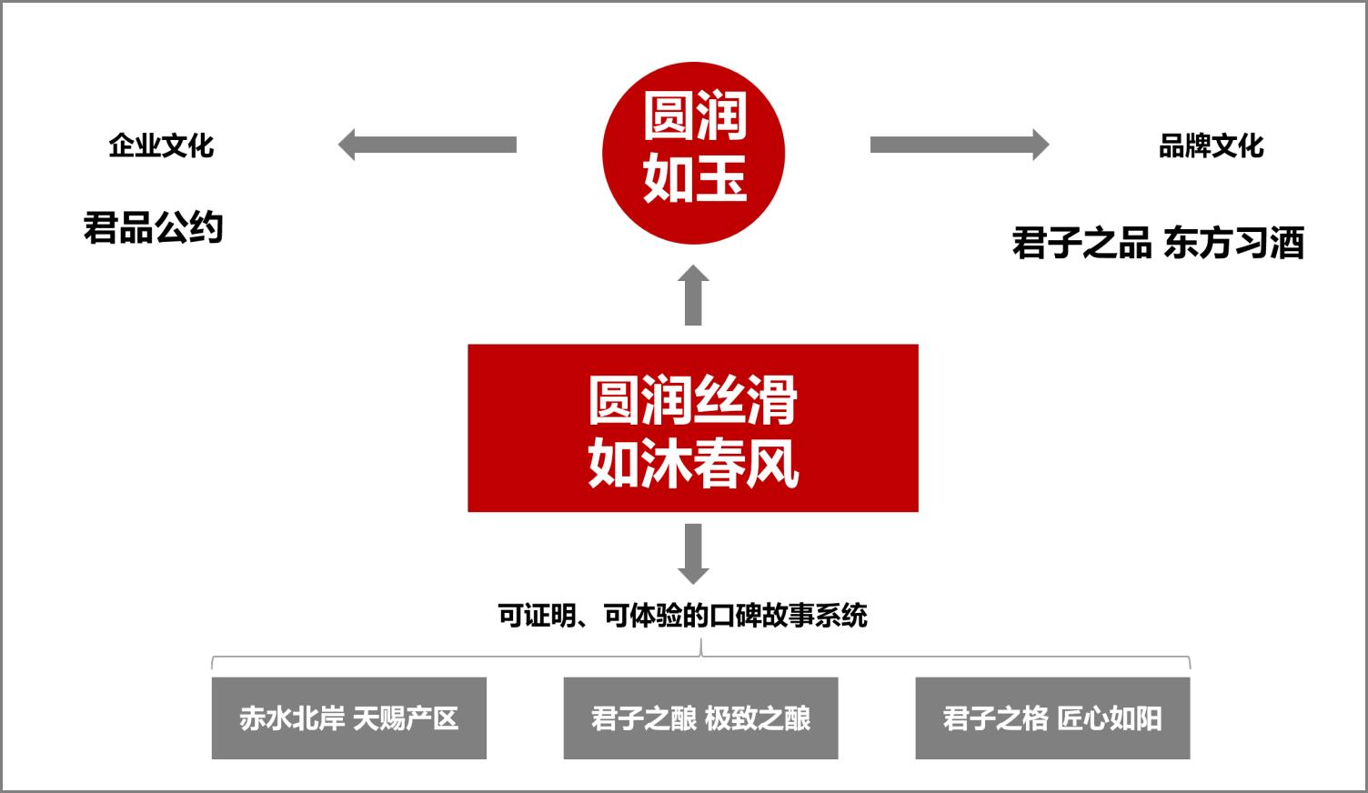 完整的高勢(shì)能品牌價(jià)值體系包含物質(zhì)價(jià)值和精神價(jià)值,背后需要三大文化支撐,分別是企業(yè)文化、品質(zhì)文化和品牌文化,其中,企業(yè)文化是根,它“長(zhǎng)出”兩朵花,一朵是品質(zhì)文化,另一朵是品牌文化,即精神層面的人格化表達(dá)(以習(xí)酒為例)。