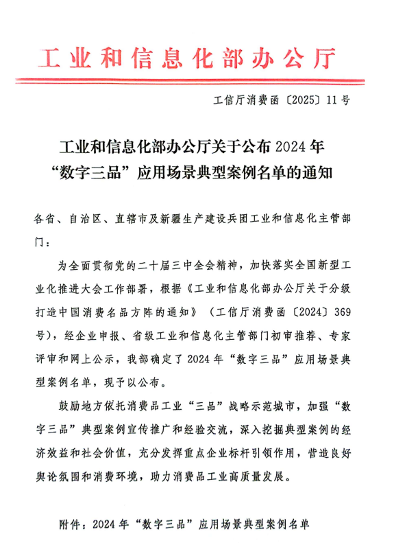 2025年1月7日,工信部發(fā)布2024年“數(shù)字三品”應(yīng)用場景典型案例名單,江蘇洋河酒廠股份有限公司的“白酒行業(yè)全鏈路柔性供應(yīng)鏈一體化應(yīng)用”入選其中的面向市場需求的敏捷供應(yīng)鏈案例,為宿遷首次入選工信部“數(shù)字三品”應(yīng)用場景典型,宿遷市“數(shù)字三品”應(yīng)用場景典型企業(yè)實現(xiàn)零的突破。