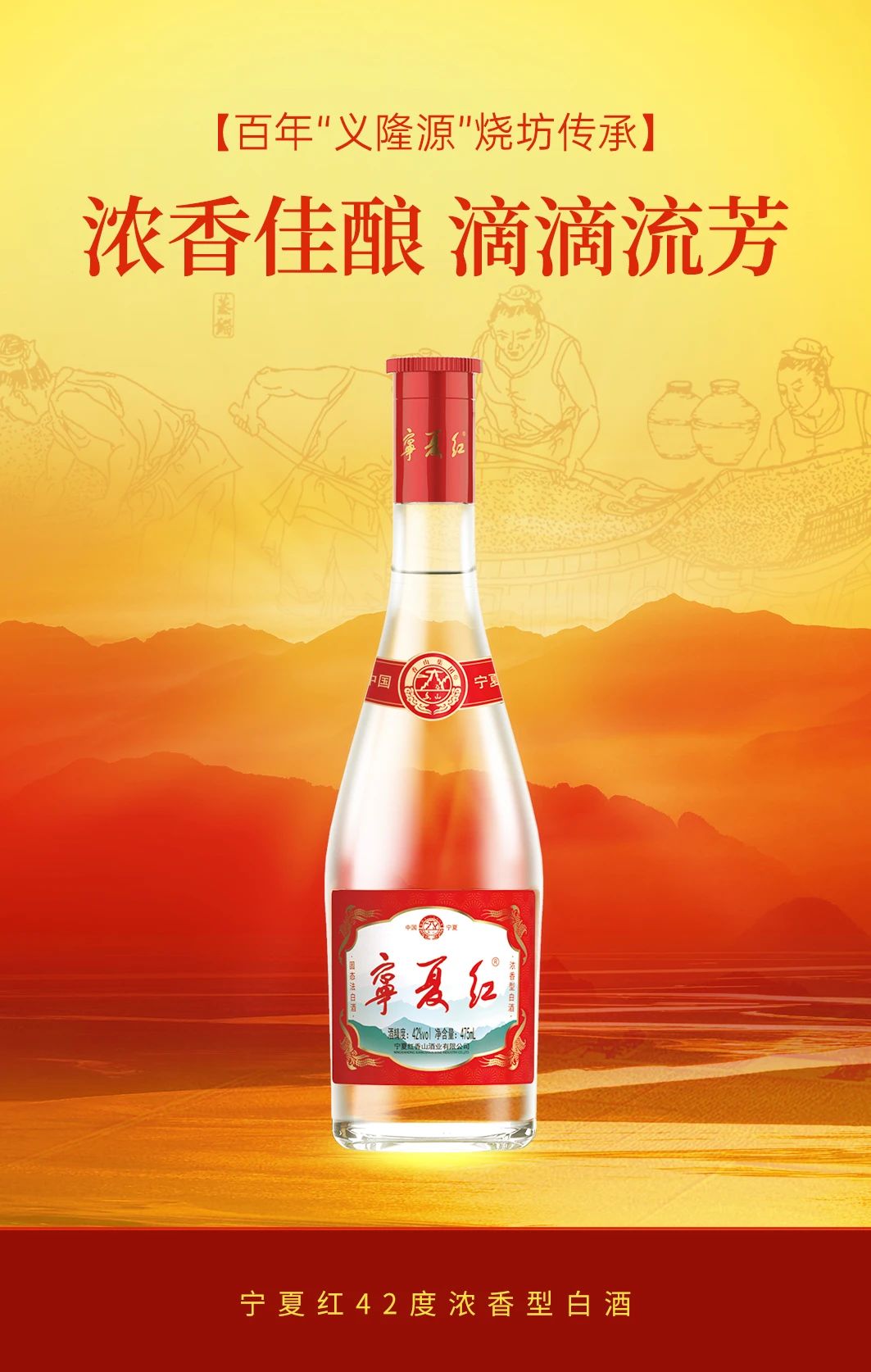 今天,寧夏紅42度濃香型白酒、寧夏紅52度濃香型白酒新品問世,無論是從產品設計還是酒體創新,均完成了一次質的飛躍,這既是對百年酒脈傳承創新的最好詮釋,讓這一百年品牌在新時代下煥發出新活力,也為消費者獻上了一杯塞上美酒,使每一瓶酒都成為連接歷史與現實的文化媒介,進一步鞏固了寧夏紅白酒的市場地位。