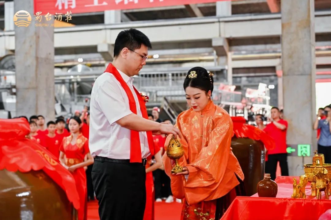 瀘州蜀臺(tái)酒莊常務(wù)副總經(jīng)理李鵬濤誦讀祝文,再現(xiàn)華夏酒文化的莊重傳承。