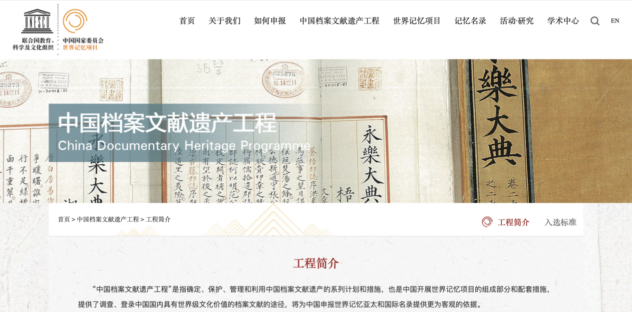 中國檔案文獻遺產工程官網介紹