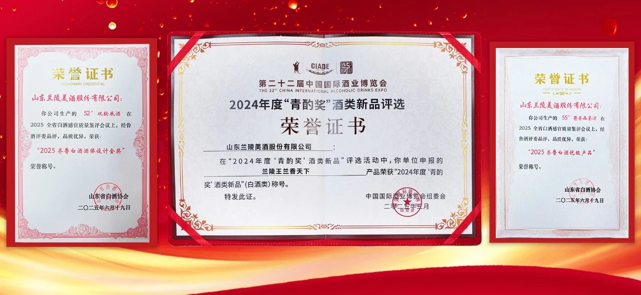 今年來,蘭陵美酒作為魯酒領(lǐng)軍企業(yè),在打造優(yōu)質(zhì)產(chǎn)品的同時,獲得多項重磅獎項,公司“蘭陵52°雙輪底酒”和“蘭陵55°醬香品鑒酒”分別榮獲“2025齊魯白酒酒體設(shè)計金獎”和“2025 齊魯白酒優(yōu)級產(chǎn)品”榮譽稱號,“蘭陵王·蘭香天下”榮膺“2024年度‘青酌獎’酒類新品”稱號……贏得行業(yè)專家和消費者的一致贊譽。