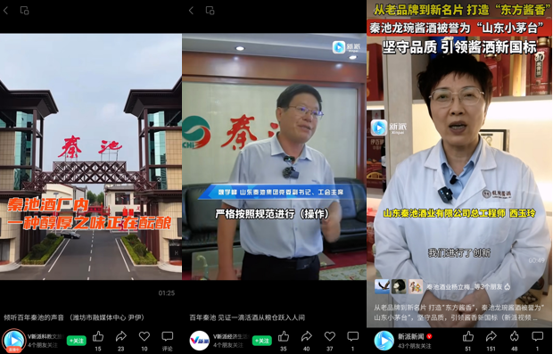 同時,濰坊融媒體組織全媒體記者錄制編播采寫系列深度報道、策劃運營專業團隊開展線上線下促銷,與秦池酒業開展全面戰略合作,攜手打造“釀一流好酒,樹百年秦池”品牌,全面賦能秦池集團把握時代機遇,再創新輝煌。